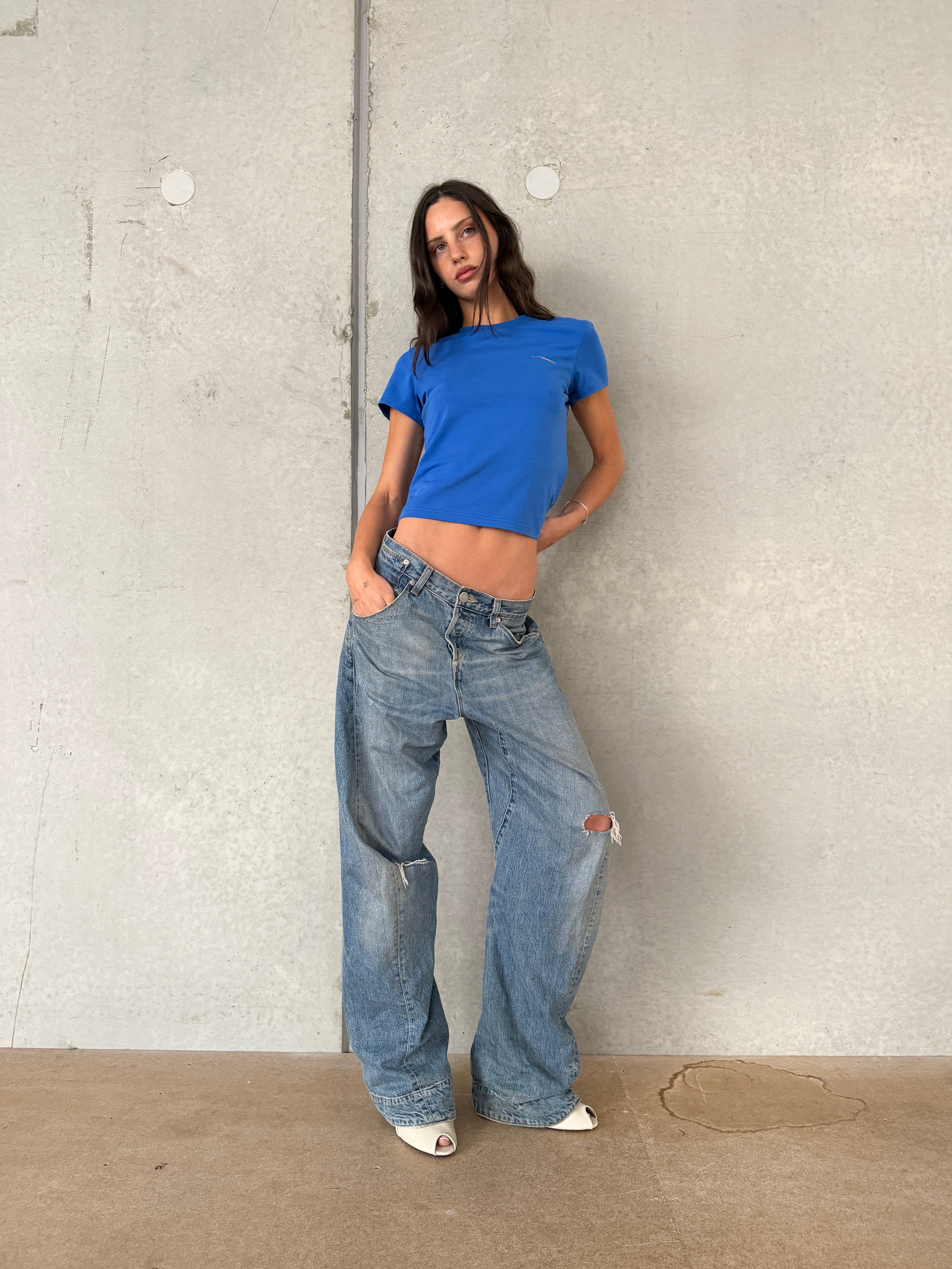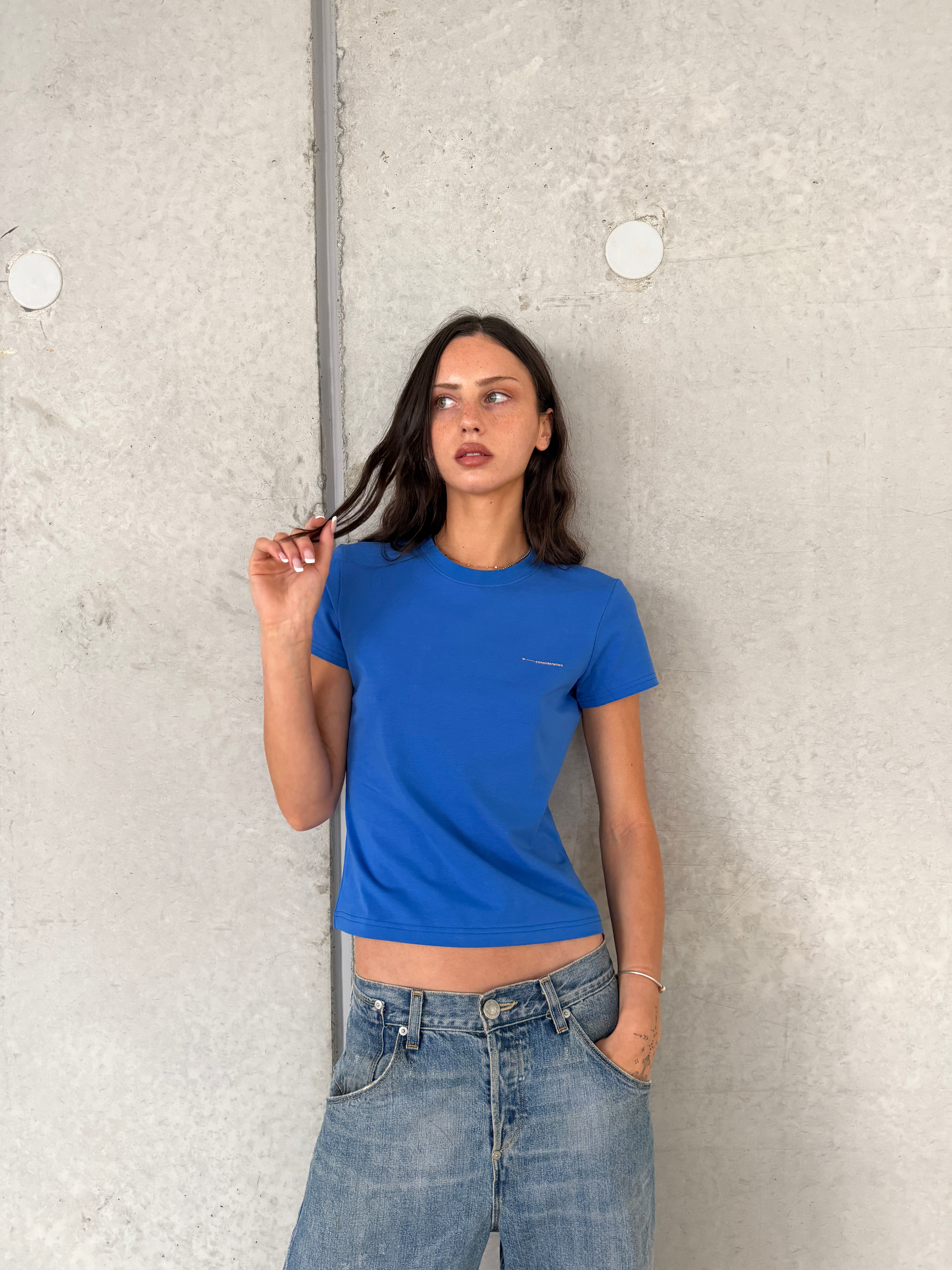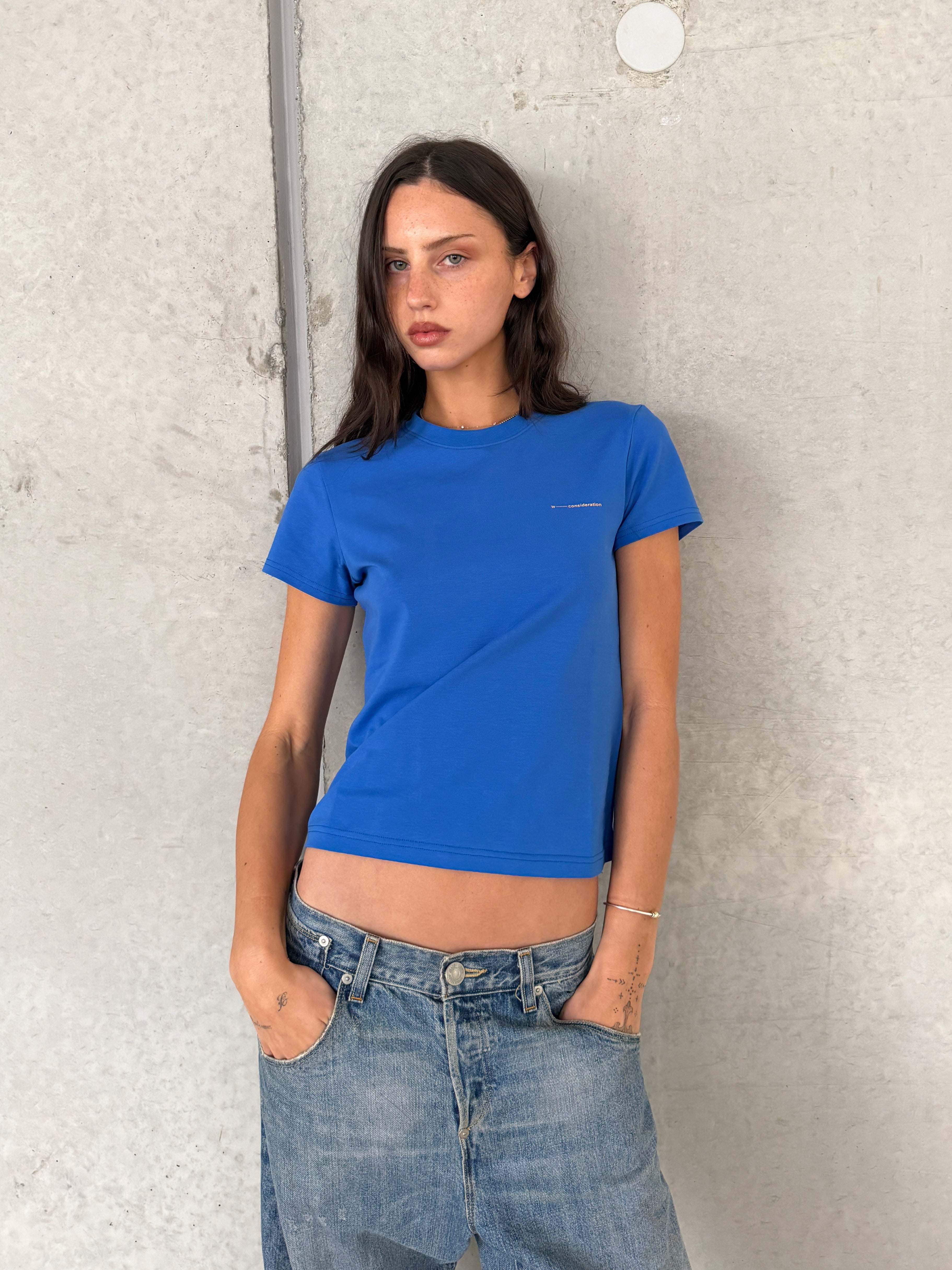 Introducing our Shrunken Tee - a classic silhouette reimagined in electric blue.