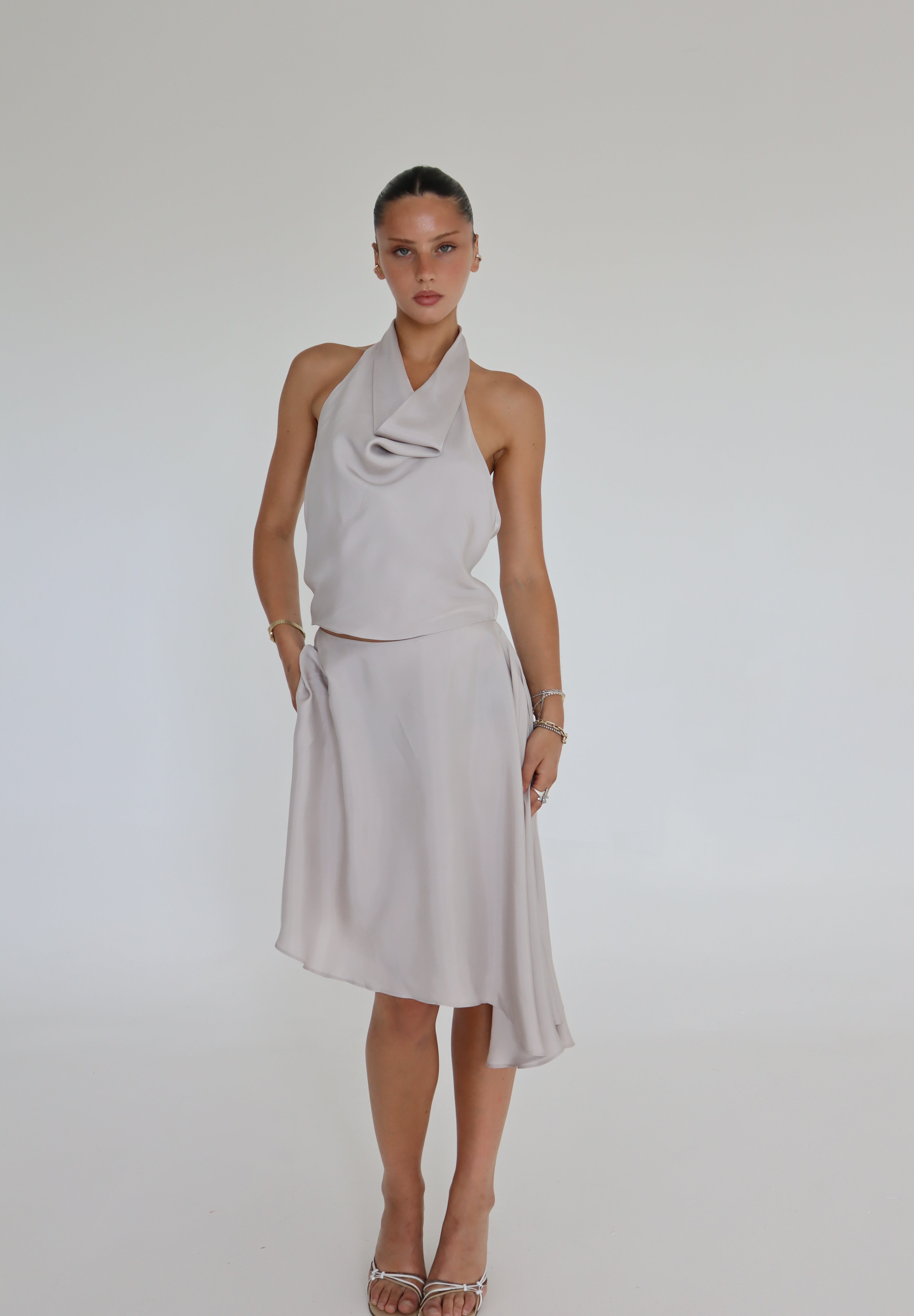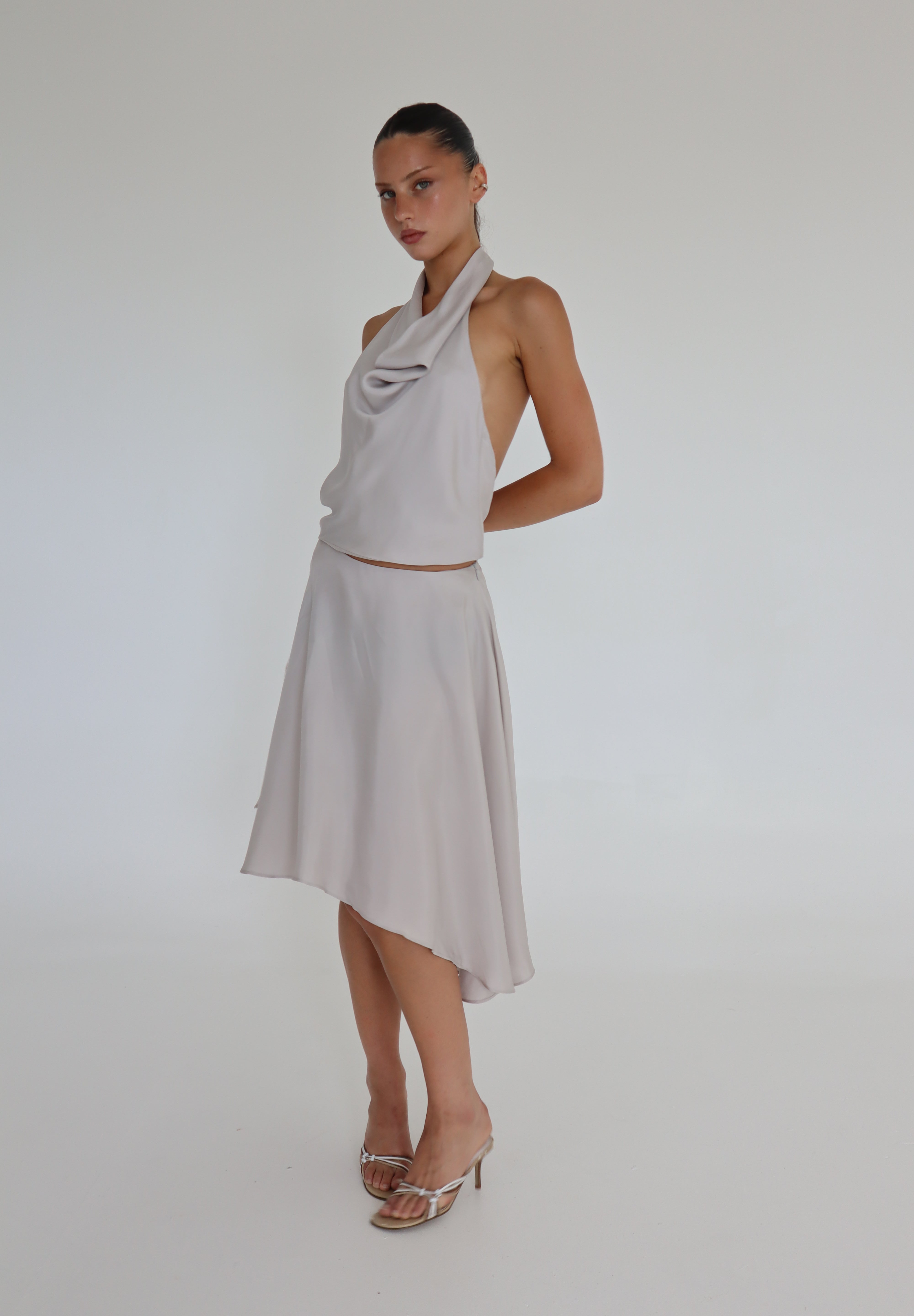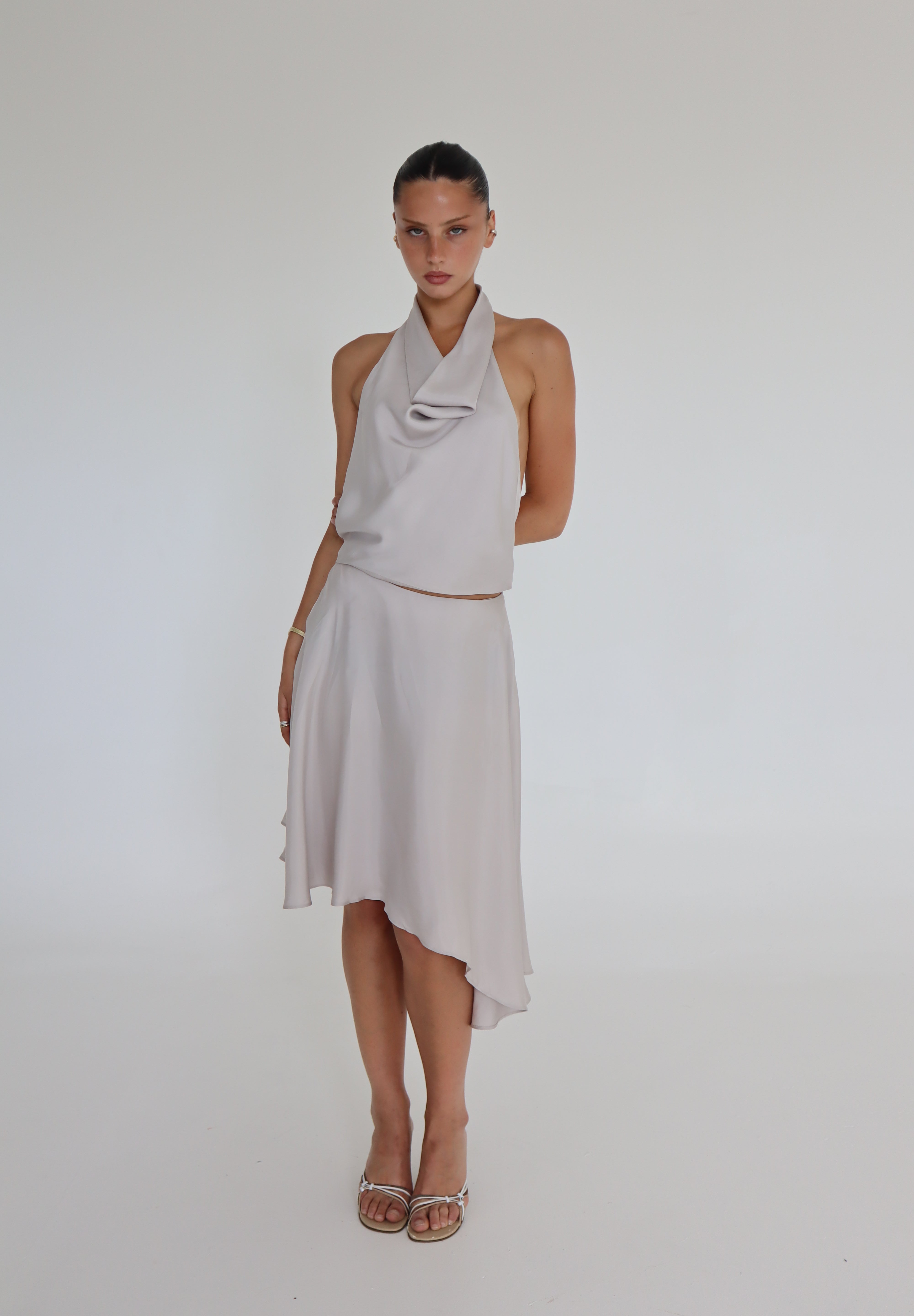 Crafted from soft, silky cupro, this skirt is your perfect summer staple. The asymmetric hem and drapey fabric create effortless movement, making it easy to style with sandals for daytime or kitten heels for evening.