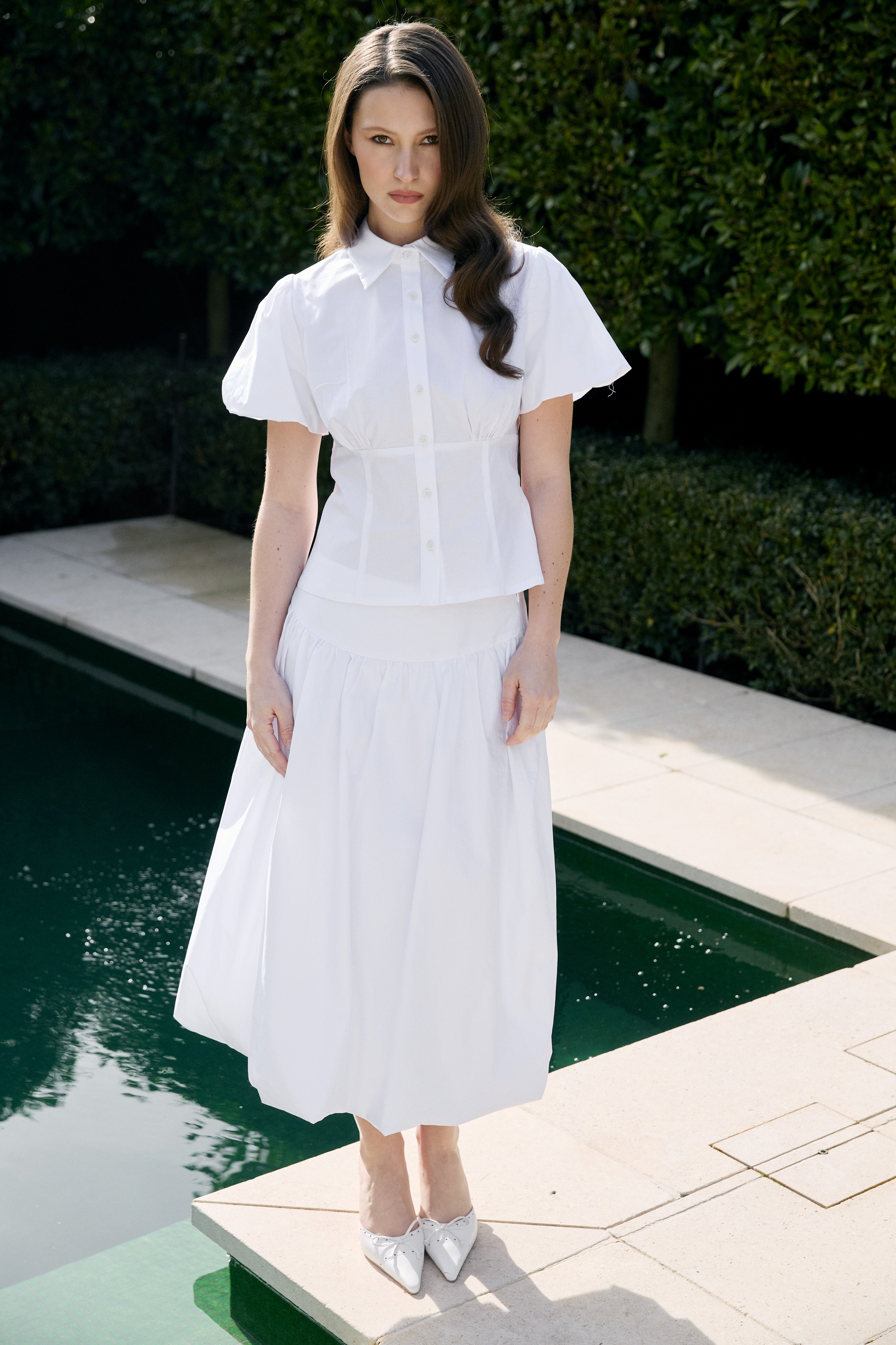 The Bubble Sleeve Shirt is the perfect addition to your Spring wardrobe. Crafted from our premium cotton poplin, its structured design features a flattering tailored fit, accentuated by a bubble sleeve.